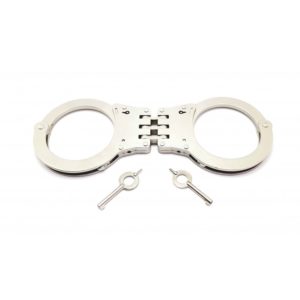 Estos grilletes poseen un mecanismo de bisagra que le permiten plegarse, estando sobredimensionados un 17% para muñecas grandes. Esta fabricado con una aleación de aluminio que lo convierte en el grillete mas ligero del mercado. Acabado en níquel. Peso: 190 grs., con 25 posiciones de cierre, 3 barras de trinquete flotante y rotulas de acero reforzado. Cumple todos los requisitos de resistencia exigidos por la Norma NIJ 0307.01.